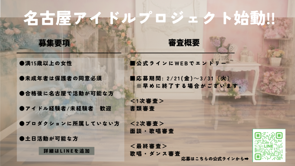 名古屋を拠点に活動する、新プロジェクトの「お披露目メンバー」を大募集しています!